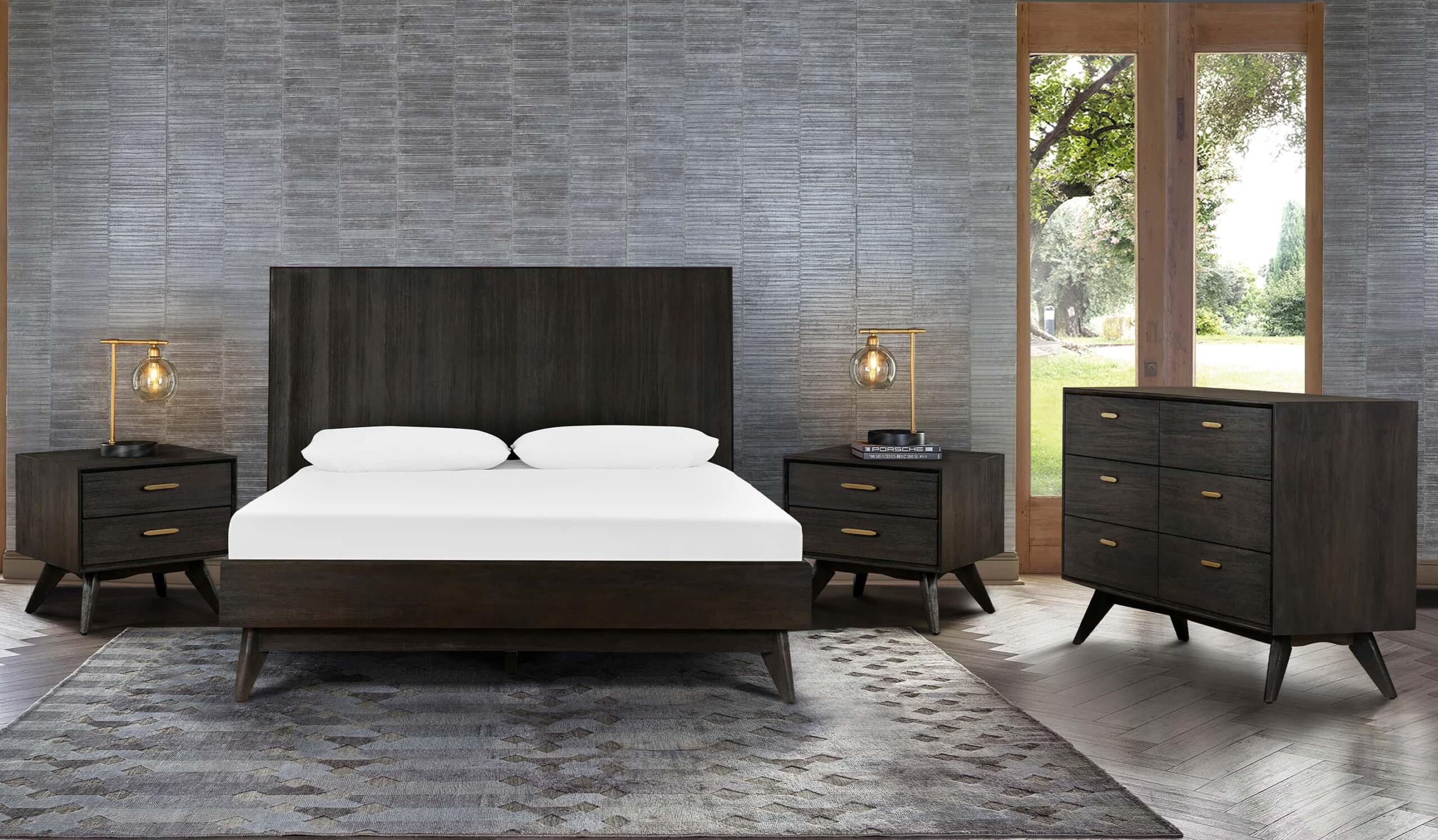 Bed and Dresser and 2 Nightstand